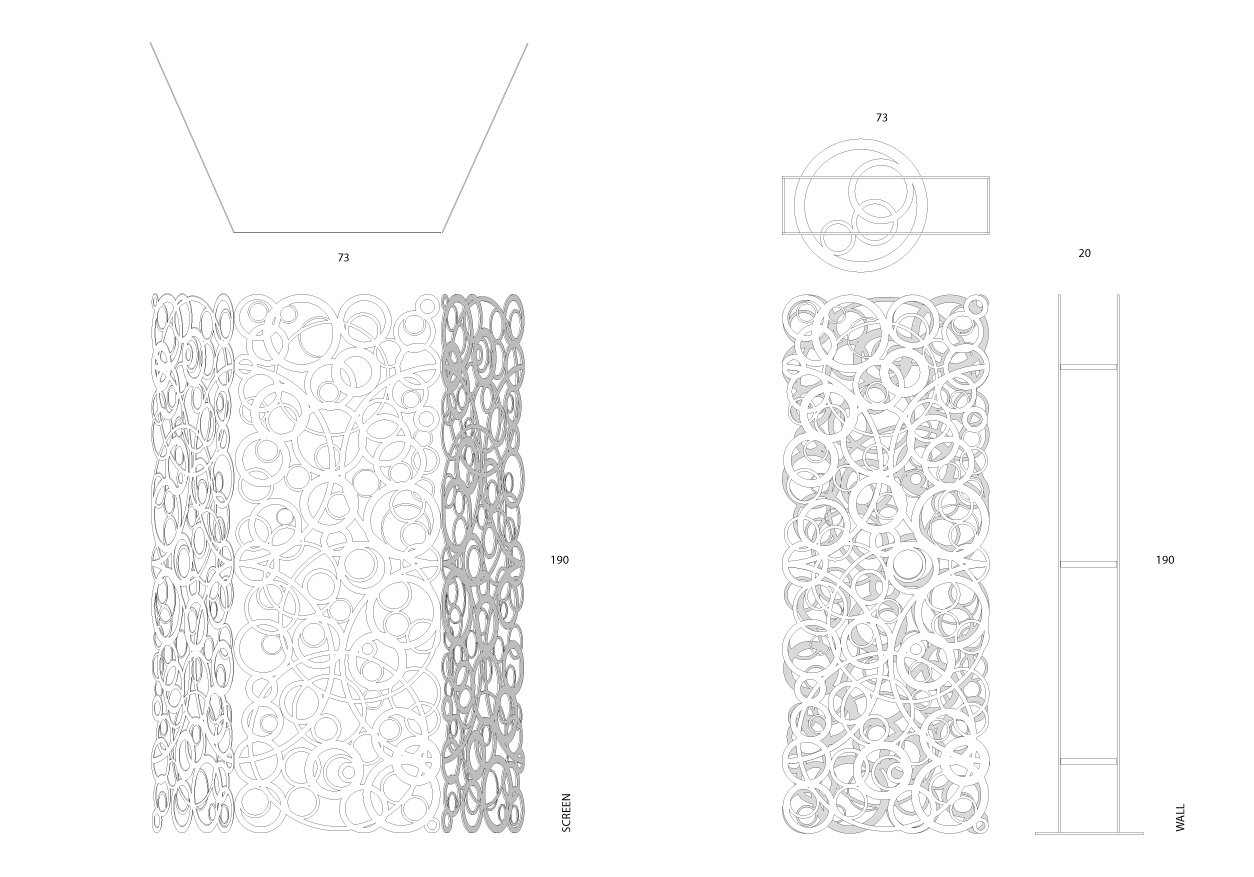 Paravento in alluminio smaltato in bianco opaco, disponibile la versione accoppiata per parete divisoria