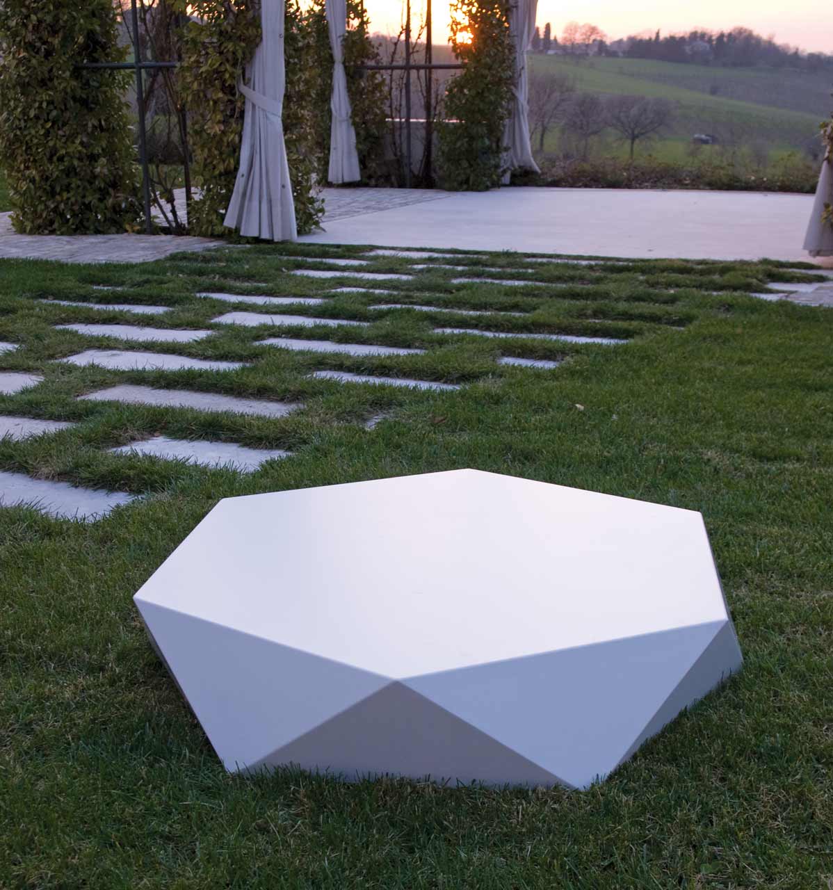 Tavolino basso in acciaio o alluminio smaltato in bianco opaco