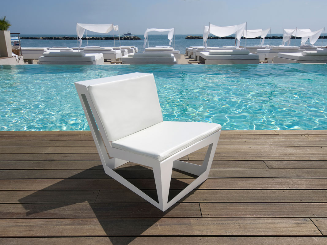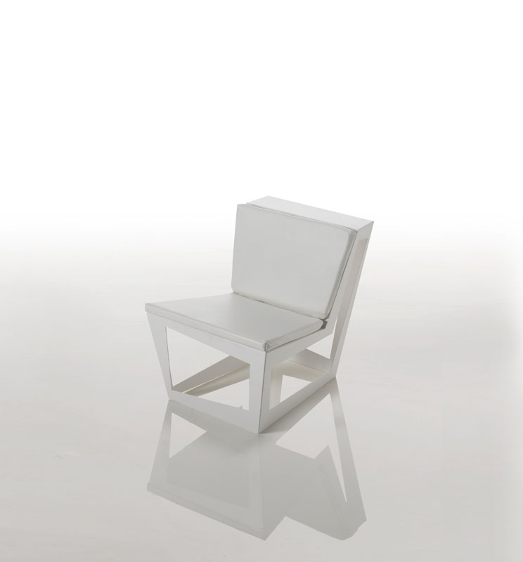 Sedia in alluminio smaltato in bianco opaco con cuscino in ecopelle
