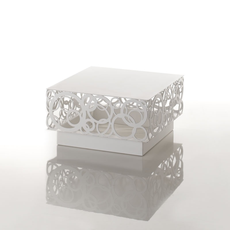 Tavolino basso con traforo in alluminio smaltato in bianco opaco